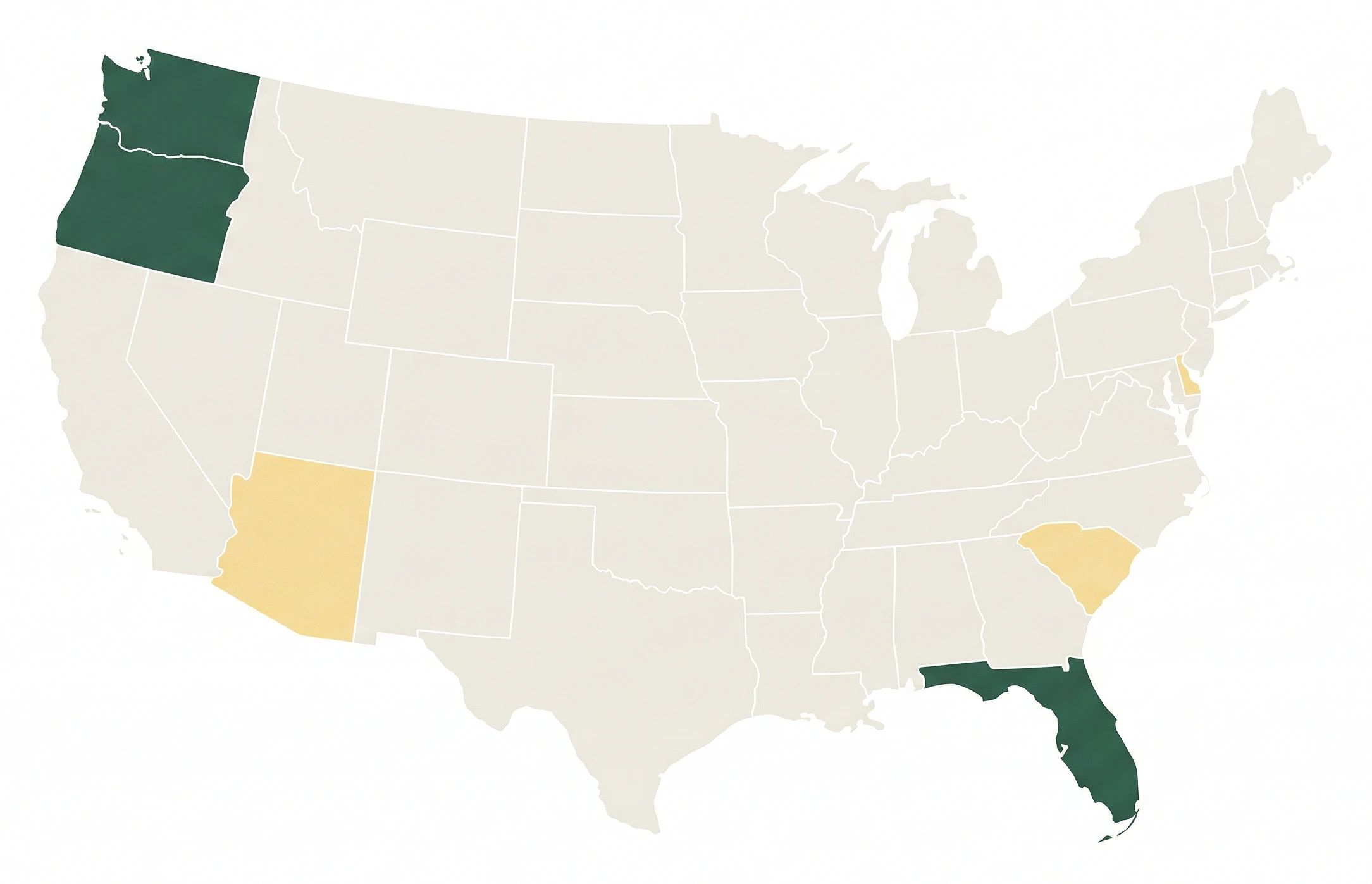 South Carolina (SC), Arizona (AZ), Delaware (DE)